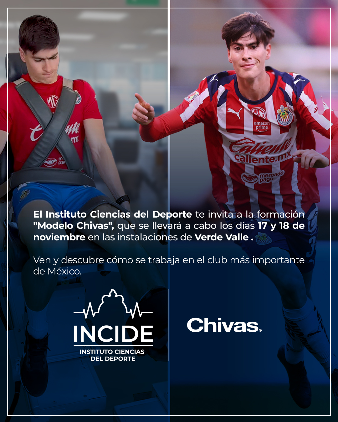 The Club Guadalajara Sports Science Institute invites you to be part of Modelo Chivas, a unique experience that goes beyond simple training. In this course, which will take place on November 17 and 18 in Verde Valle, you will discover how the comprehensive development of a professional soccer player is built from each of the areas that make up our Sports Science Department.